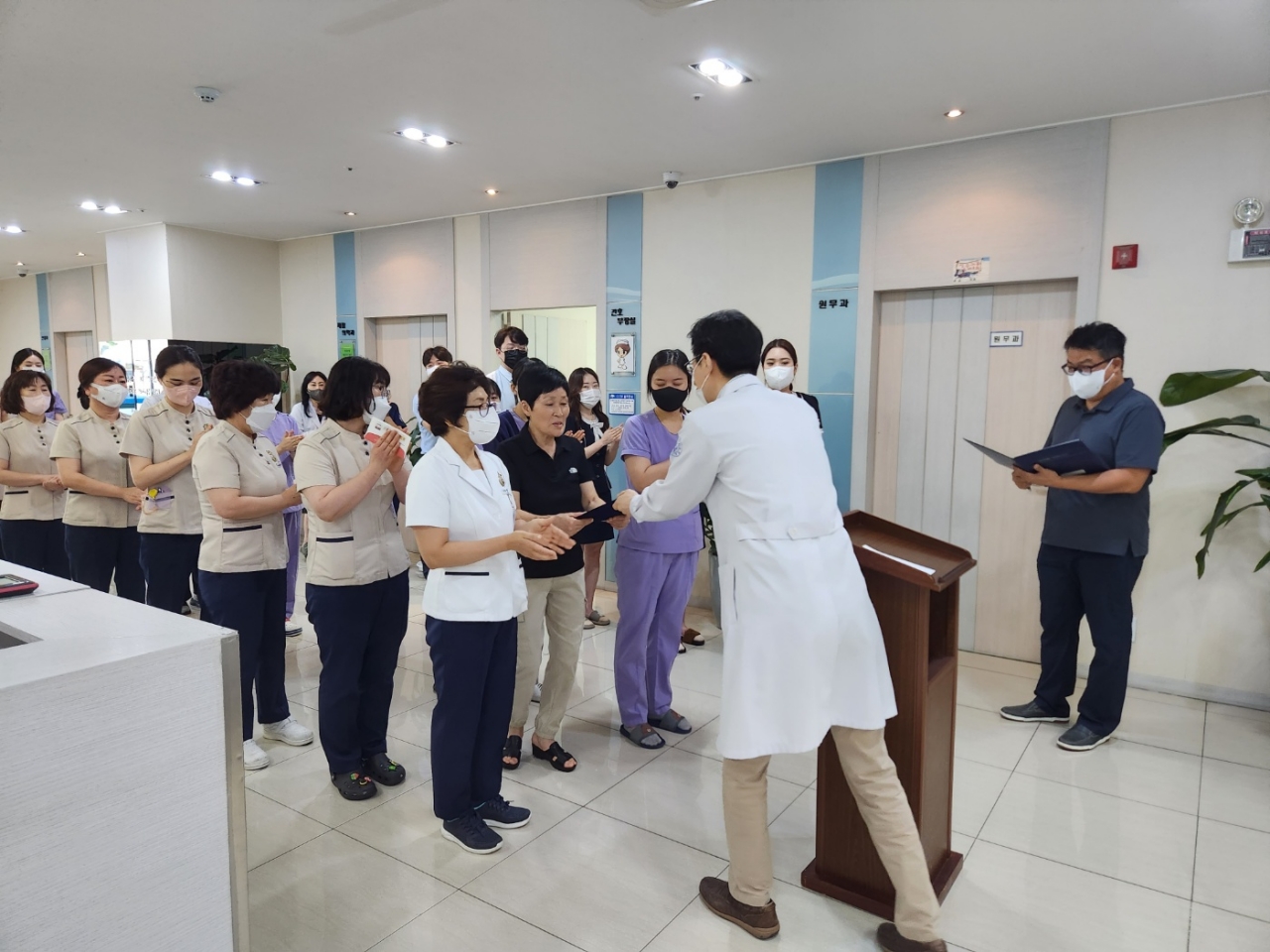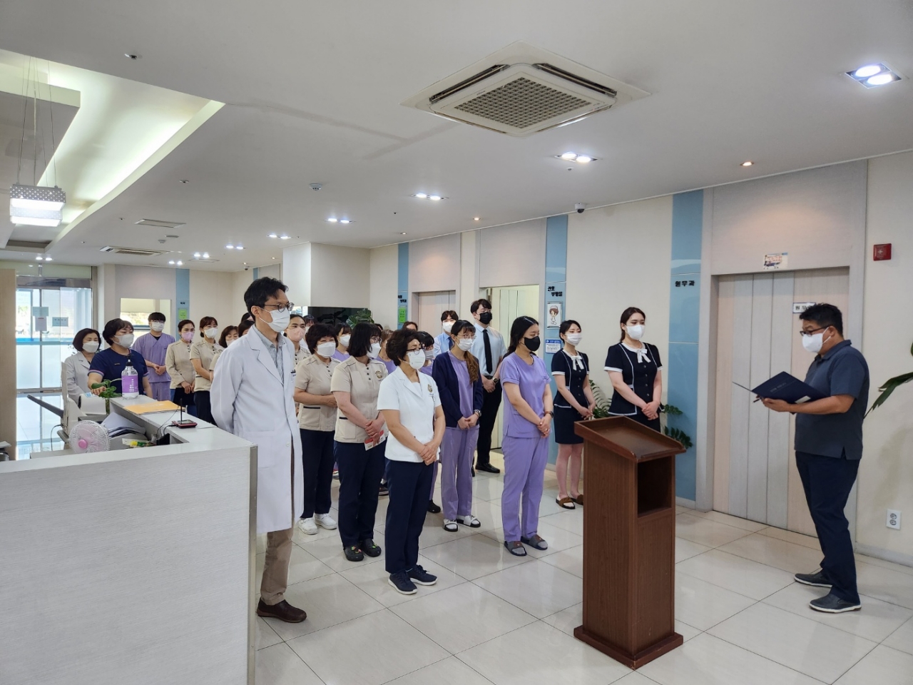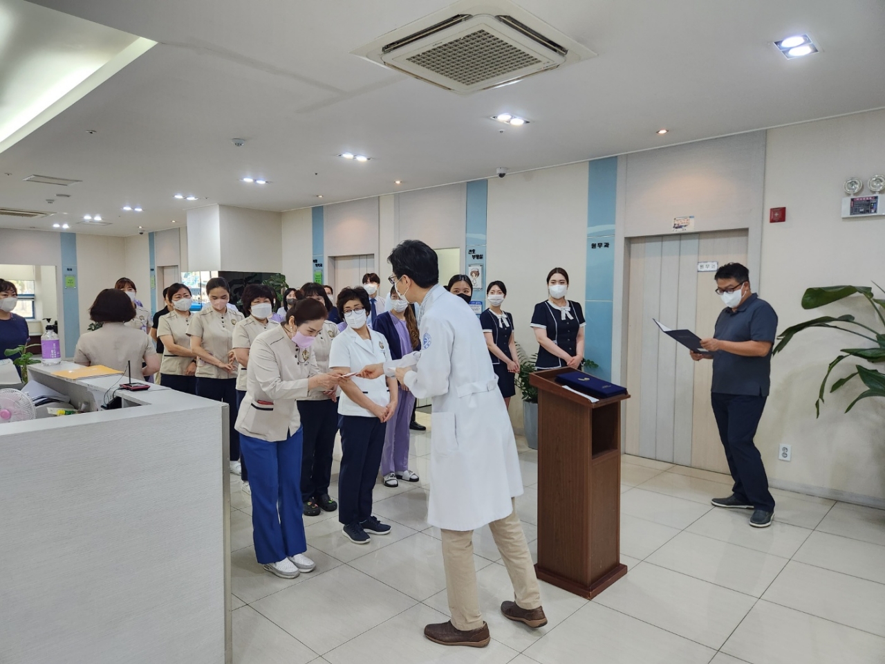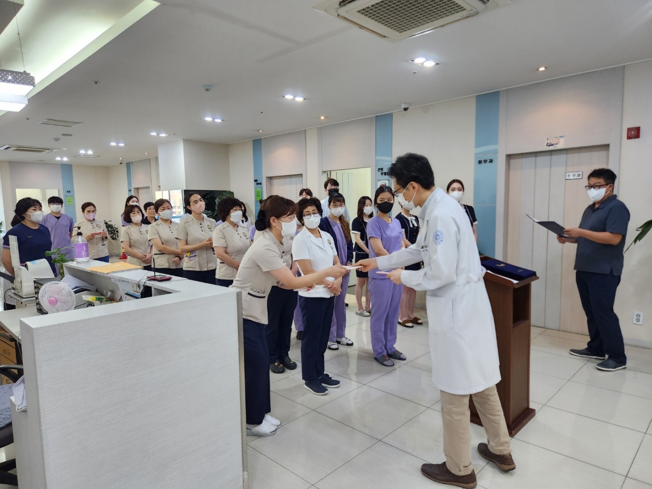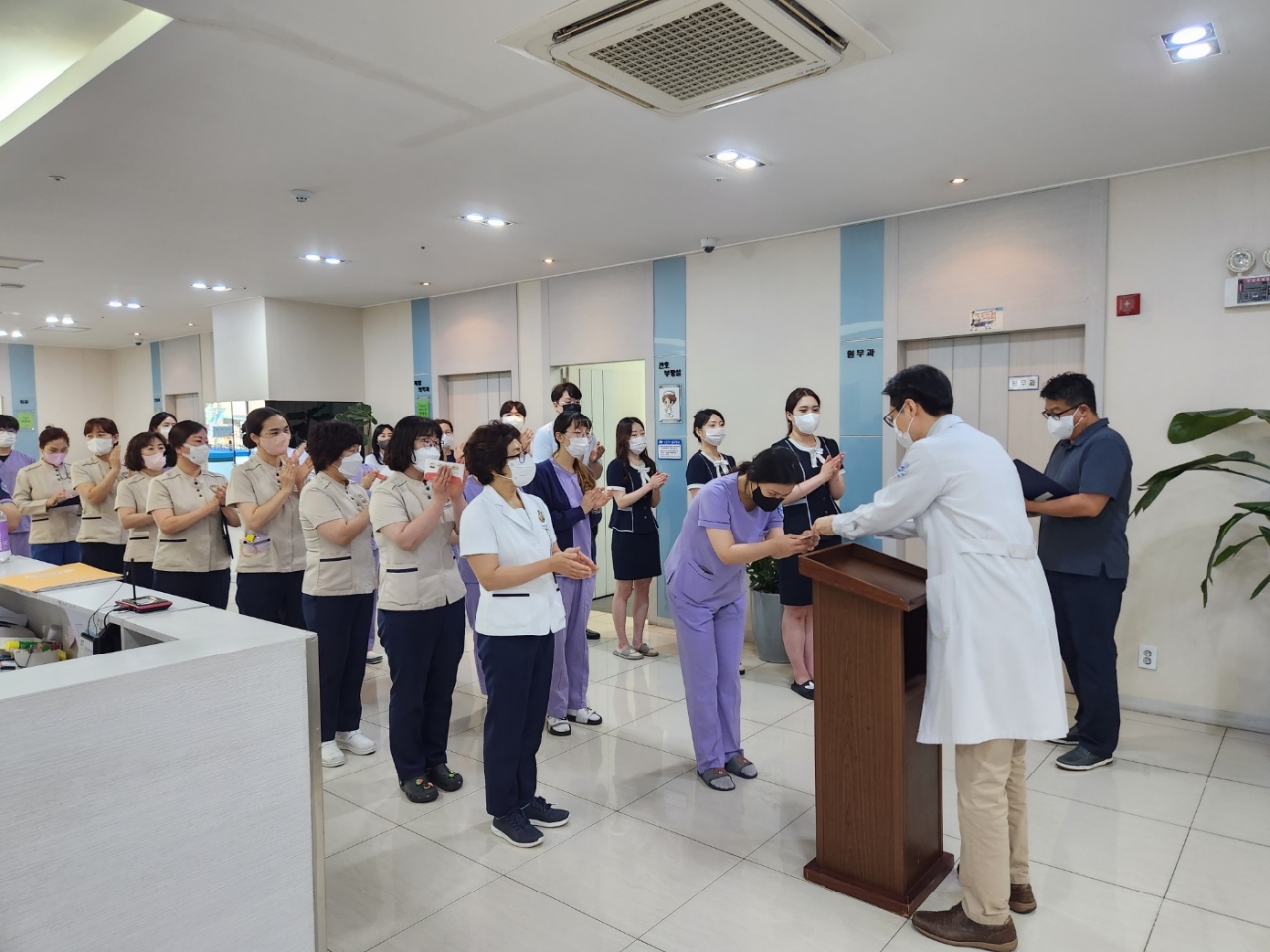 2023년 7월 월례회입니다. 페이지 정보 작성자 한신병원 댓글 0건 조회 2,382회 작성일 23-07-11 12:08 목록 본문 모두 즐거운 하루 되세요. 항상 환자분들의 안전을 위해 노력하는 한신병원이 되겠습니다. 2023년 07월 월례회 일시 : 2023년 07월 03일 장소 : 1층 로비 목록 이전글 직원 친절교육을 실시하였습니다. 23.07.13 다음글 한신병원 인사공고 발령문 23.06.08