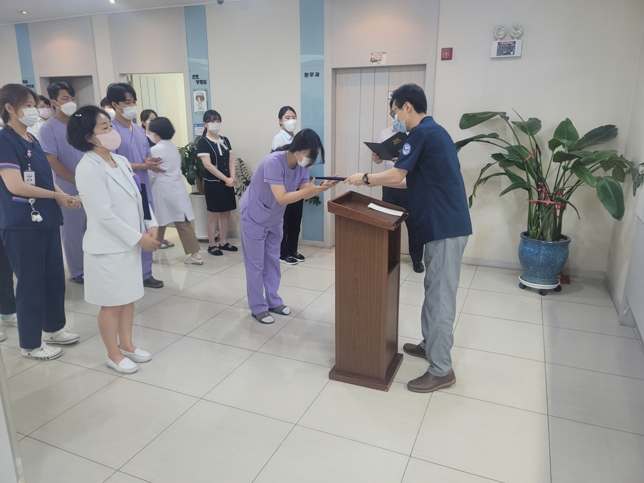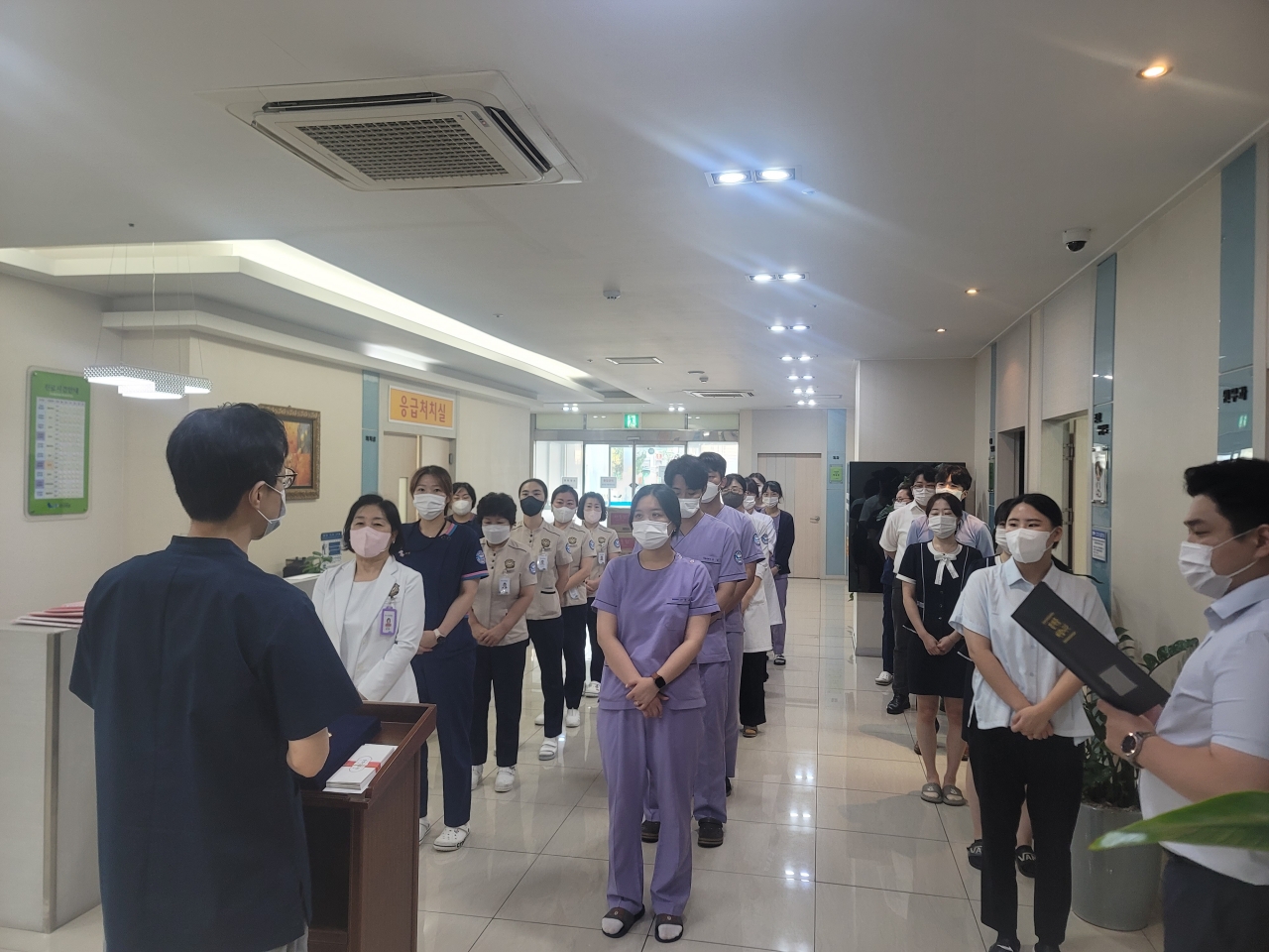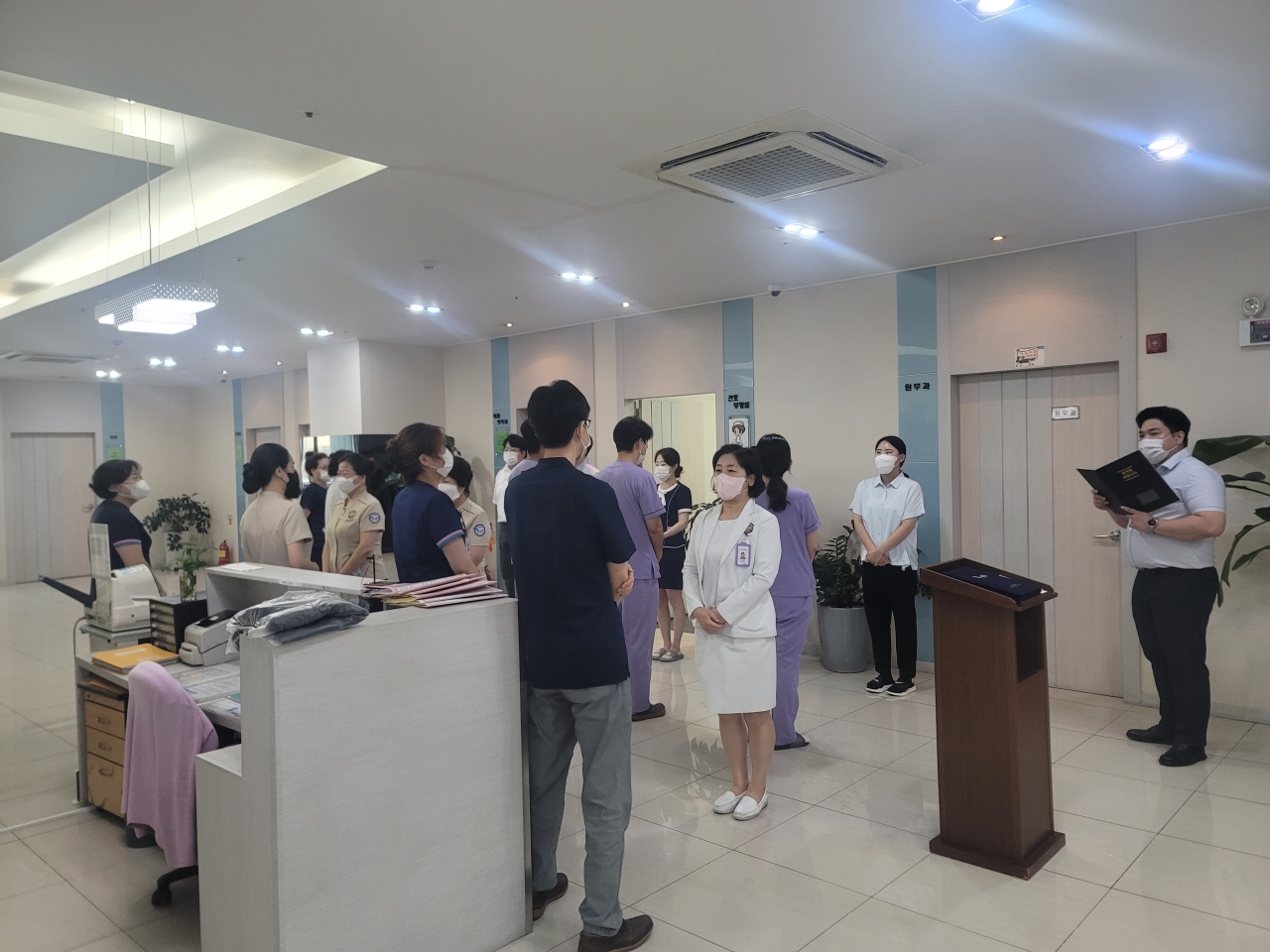 2023년 8월 월례회 입니다. 페이지 정보 작성자 한신병원 댓글 0건 조회 2,364회 작성일 23-08-02 09:36 목록 본문 모두 즐거운 하루 되세요. 항상 환자분들의 안전을 위해 노력하는 한신병원이 되겠습니다. 2023년 08월 월례회 일시 : 2023년 08월 01일 장소 : 1층 로비 목록 이전글 (의)용각의료재단 및 노인돌봄센터 MOU 체결 23.08.02 다음글 감염관리 교육을 실시하였습니다. 23.07.23