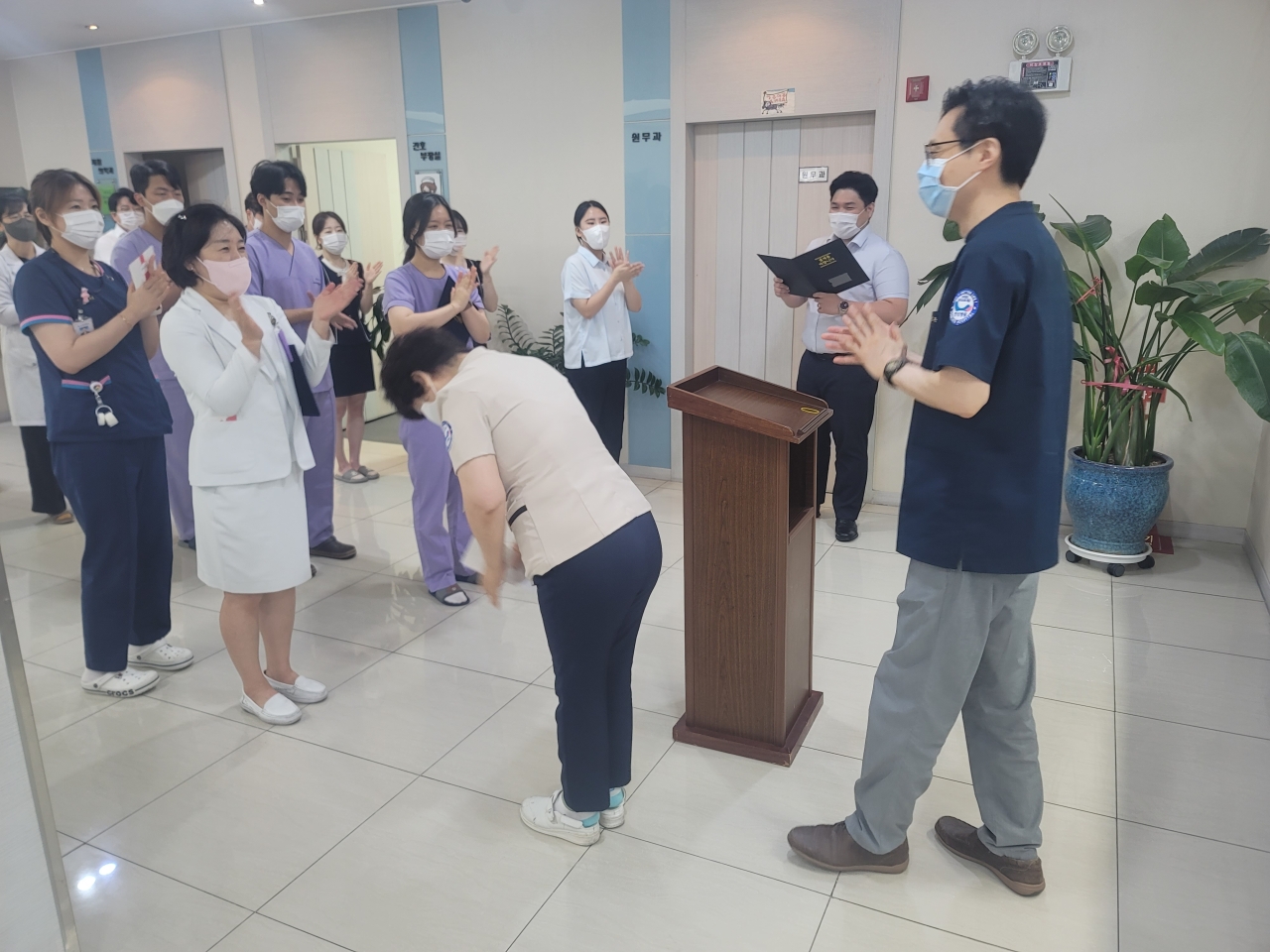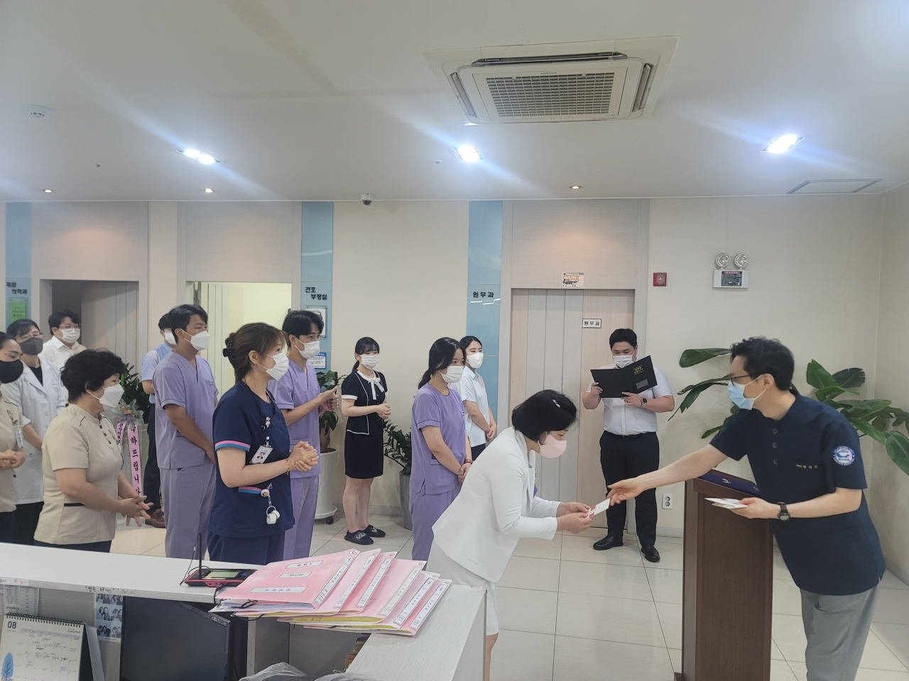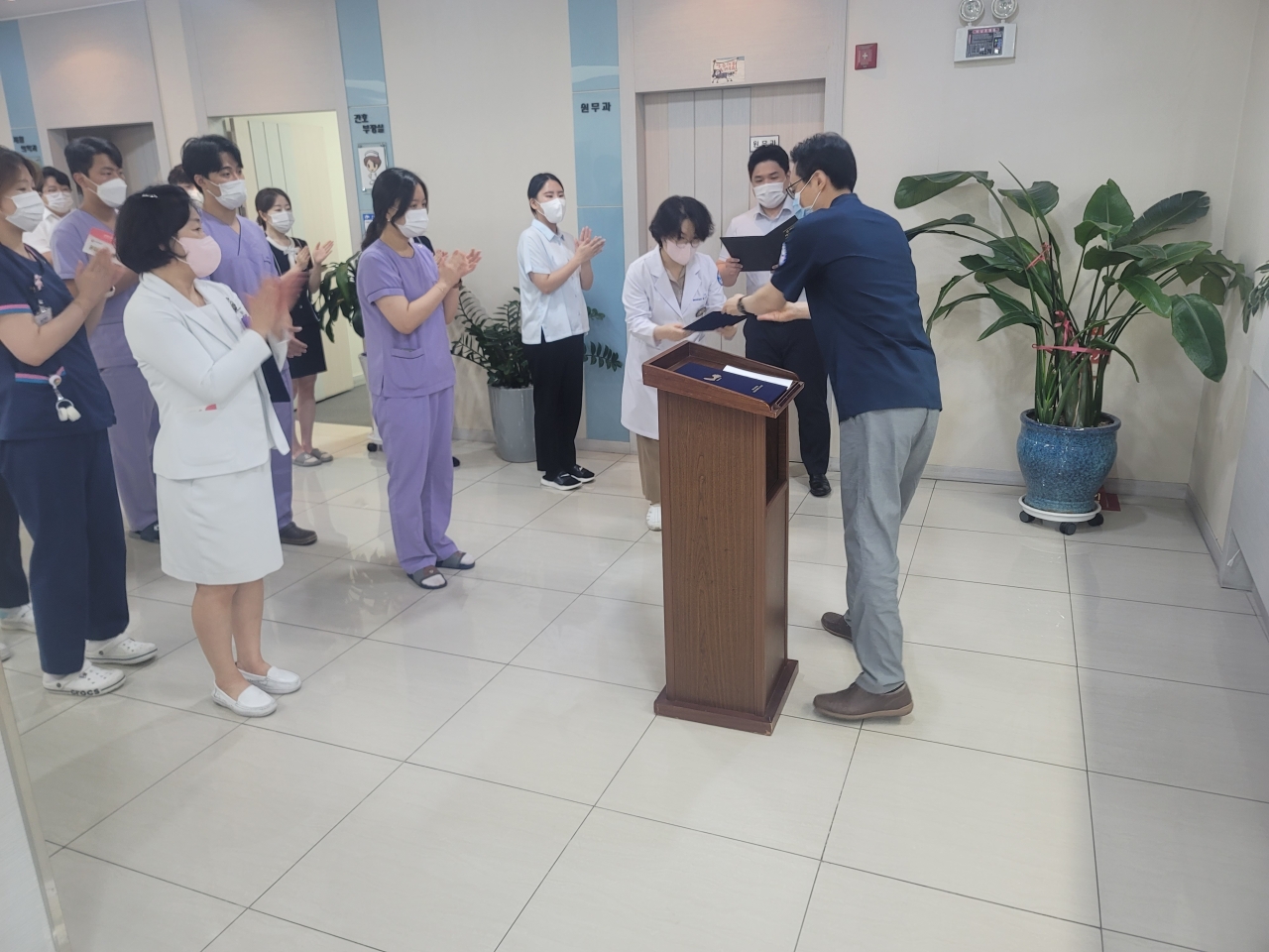 2023년 8월 월례회 입니다. 페이지 정보 작성자 한신병원 댓글 0건 조회 2,364회 작성일 23-08-02 09:36 목록 본문 모두 즐거운 하루 되세요. 항상 환자분들의 안전을 위해 노력하는 한신병원이 되겠습니다. 2023년 08월 월례회 일시 : 2023년 08월 01일 장소 : 1층 로비 목록 이전글 (의)용각의료재단 및 노인돌봄센터 MOU 체결 23.08.02 다음글 감염관리 교육을 실시하였습니다. 23.07.23