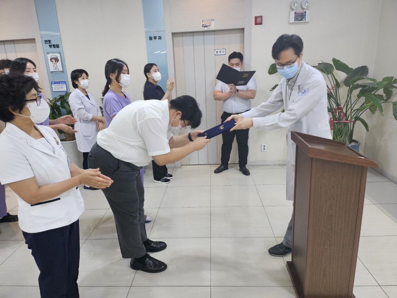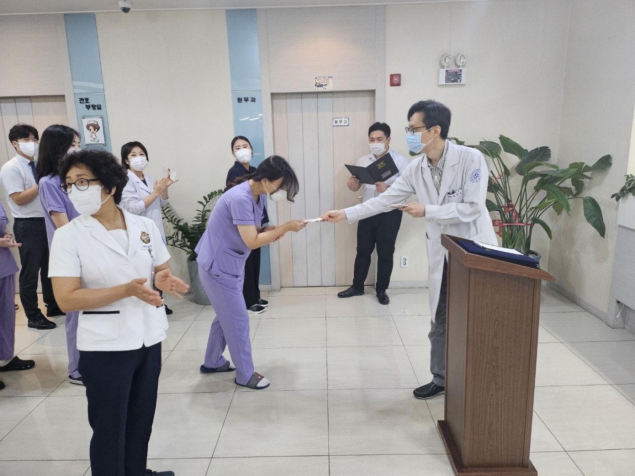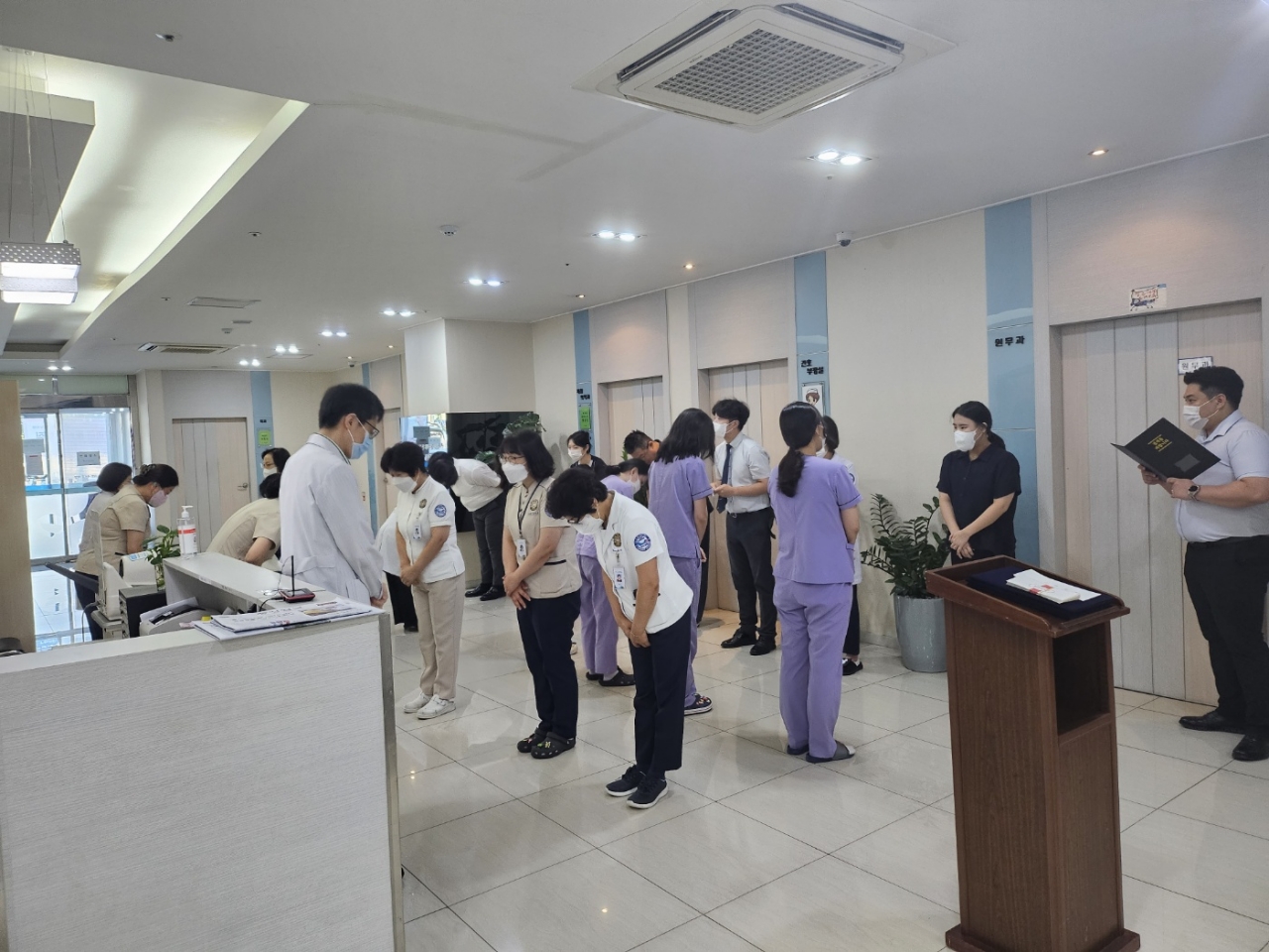 2023년 9월 월례회 입니다. 페이지 정보 작성자 한신병원 댓글 0건 조회 2,127회 작성일 23-09-04 18:13 목록 본문 모두 즐거운 하루 되세요. 항상 환자분들의 안전을 위해 노력하는 한신병원이 되겠습니다. 2023년 09월 월례회 일시 : 2023년 09월 04일 장소 : 1층 로비 목록 이전글 더 나은 통합간호간병서비스를 위하여 회의를 진행하였습니다. 23.09.19 다음글 소화기 사용법 및 소방 교육을 시행하였습니다. 23.09.04