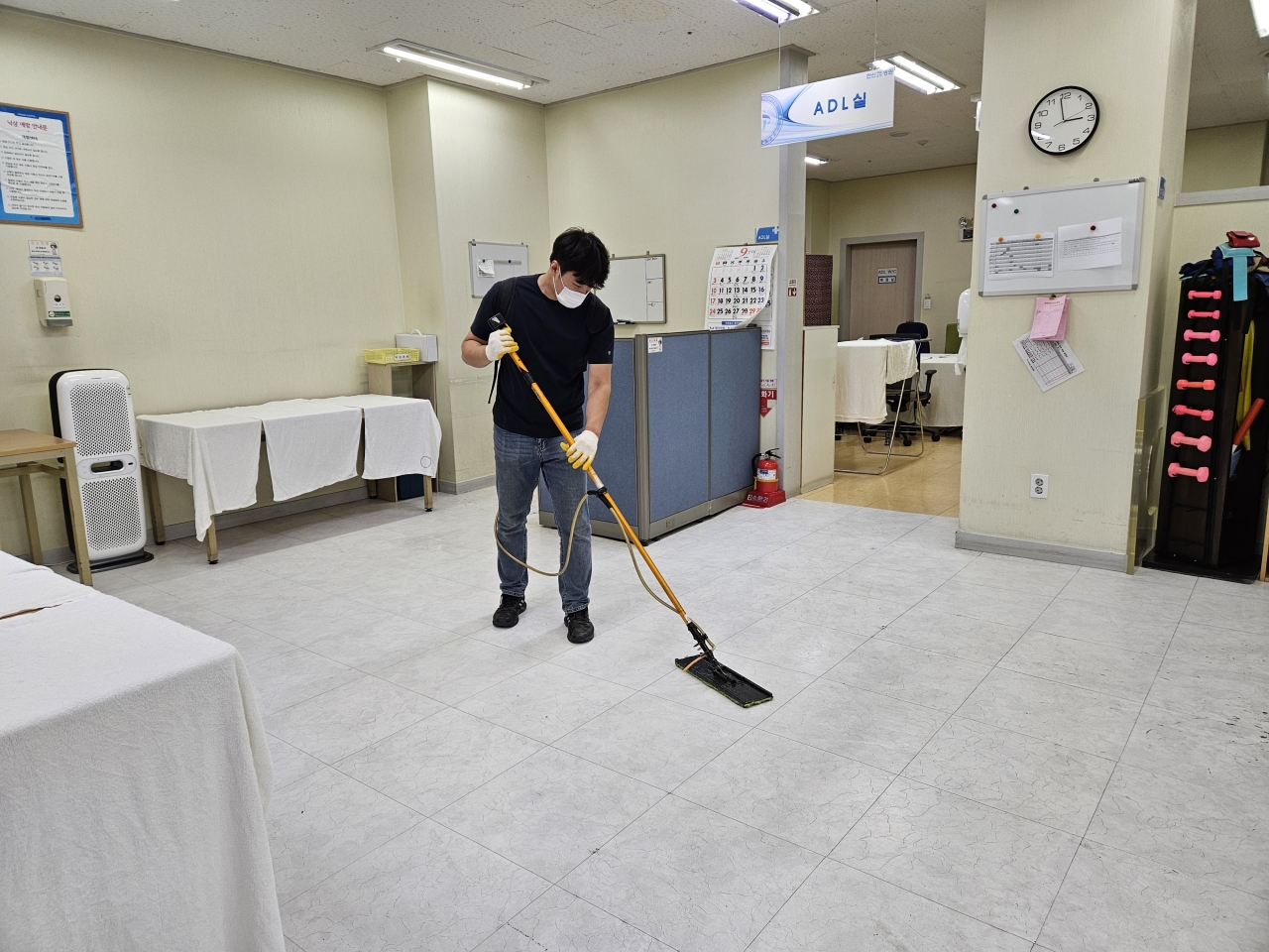 병동 및 재활치료실, 직원식당 등 바닥 청소 및 코팅 작업