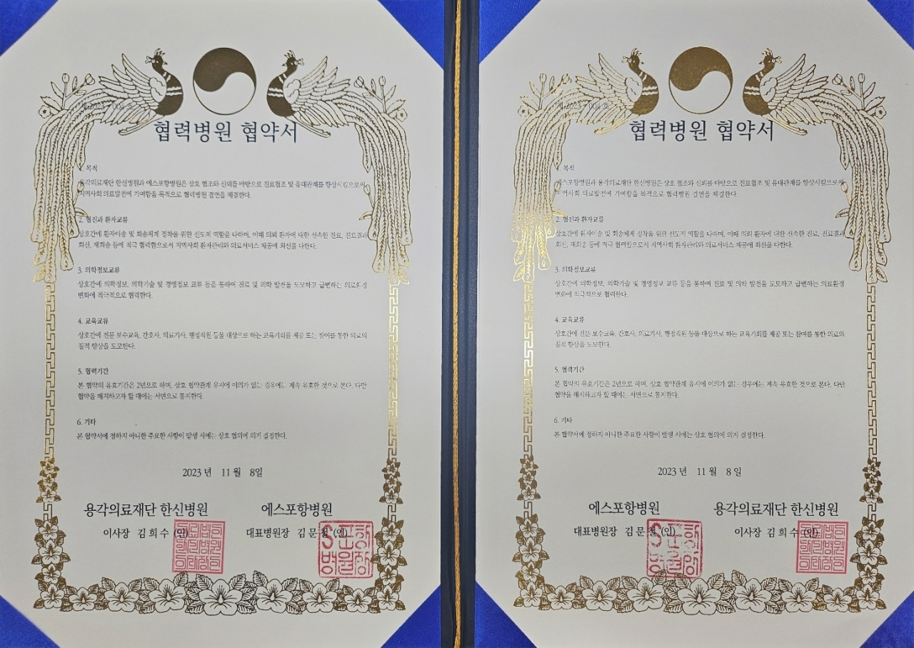 (의)용각의료재단 한신병원 - 에스포항병원 협력병원 체결