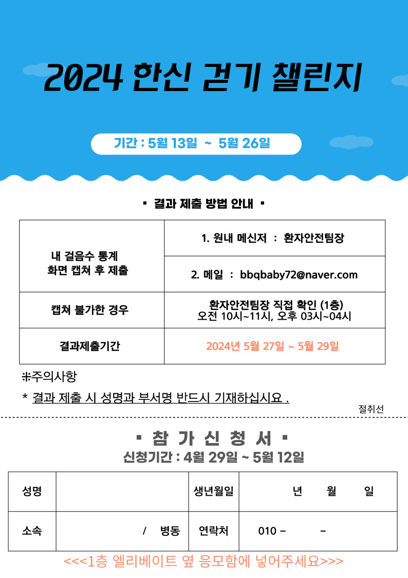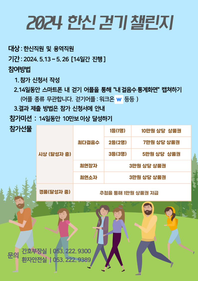 2024 한신 걷기 챌린지는 한신병원에 소속되있는 모든 직원분들이 참여가능하며,