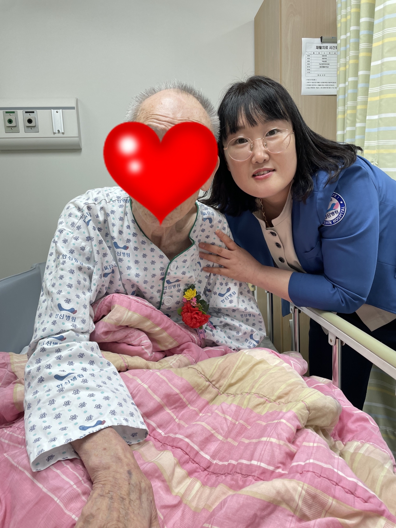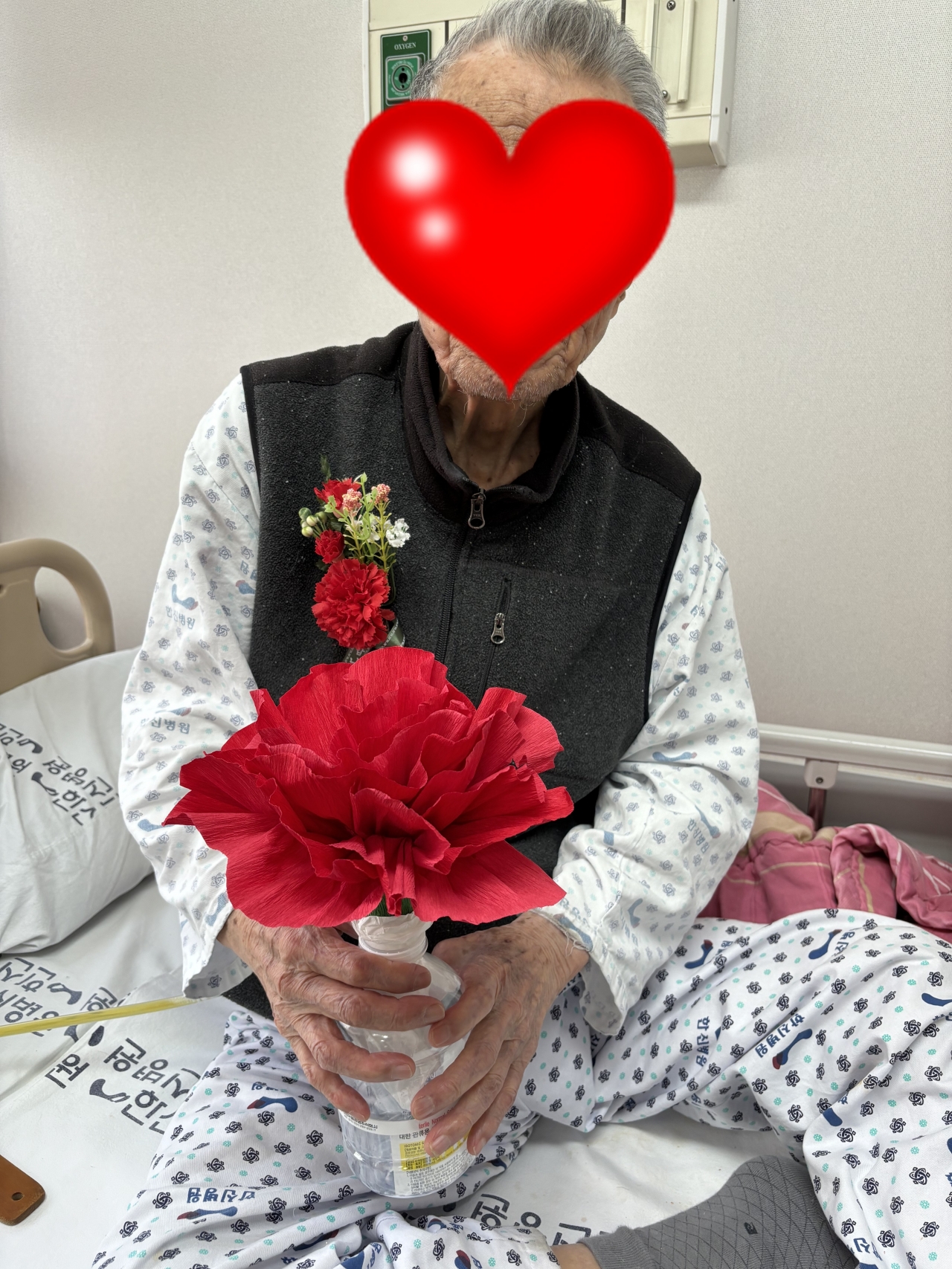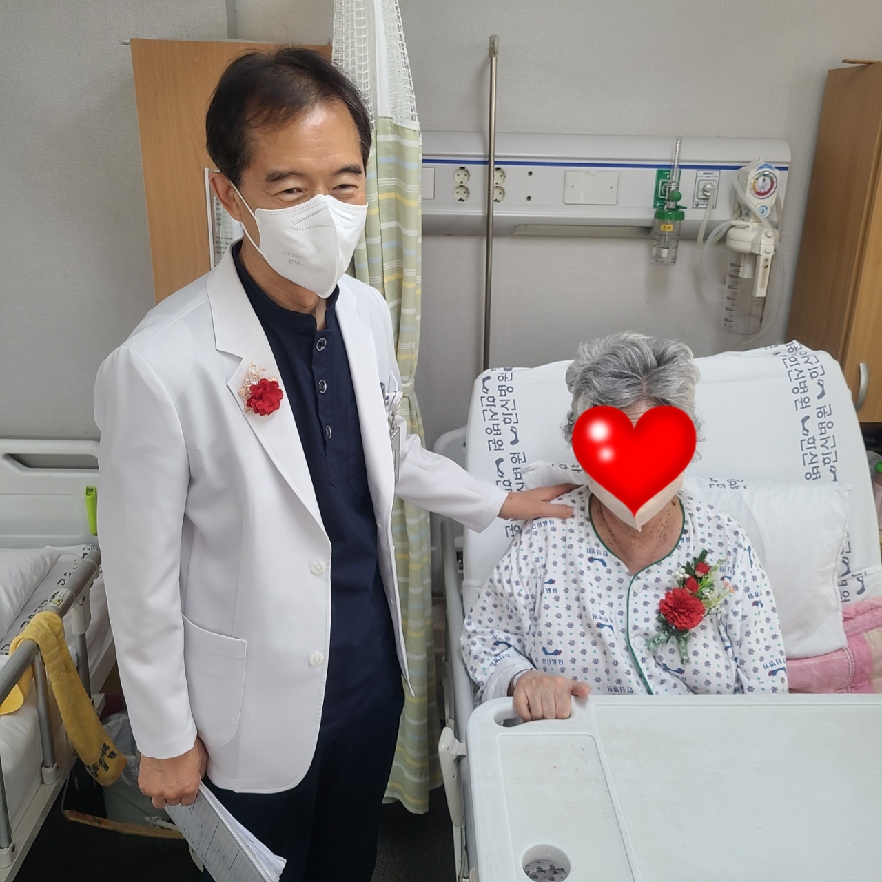 환자분들의 빠른 회복과 재활 위하는 마음으로 카네이션을 달아드렸습니다.