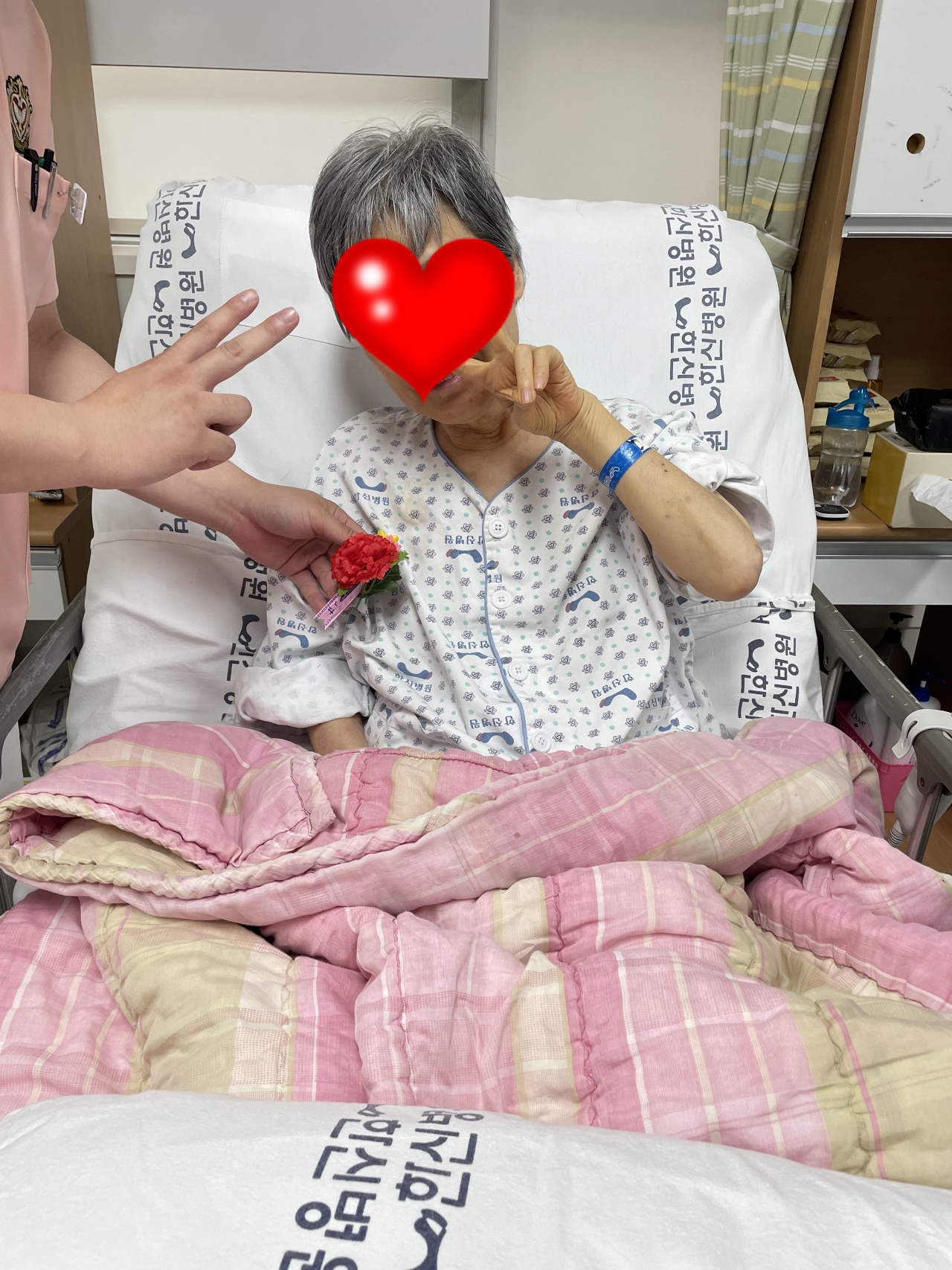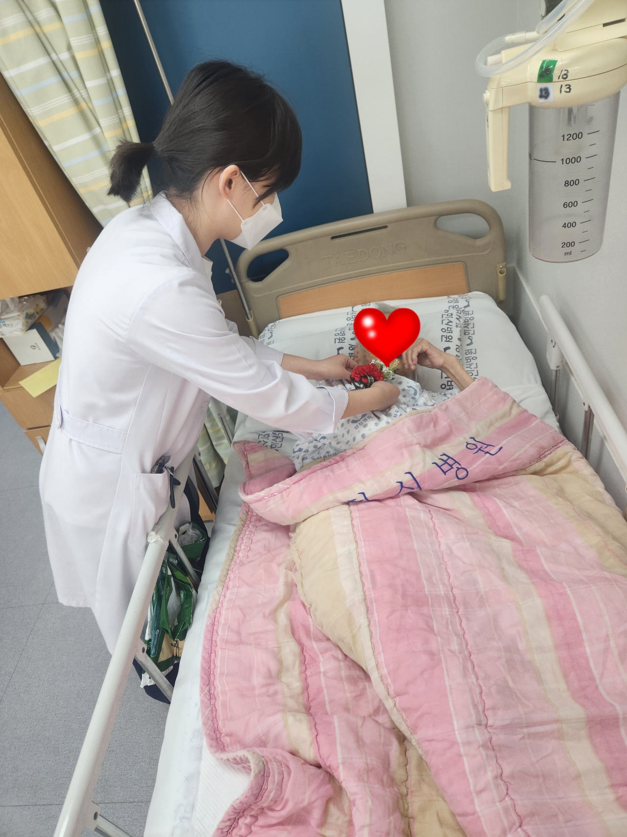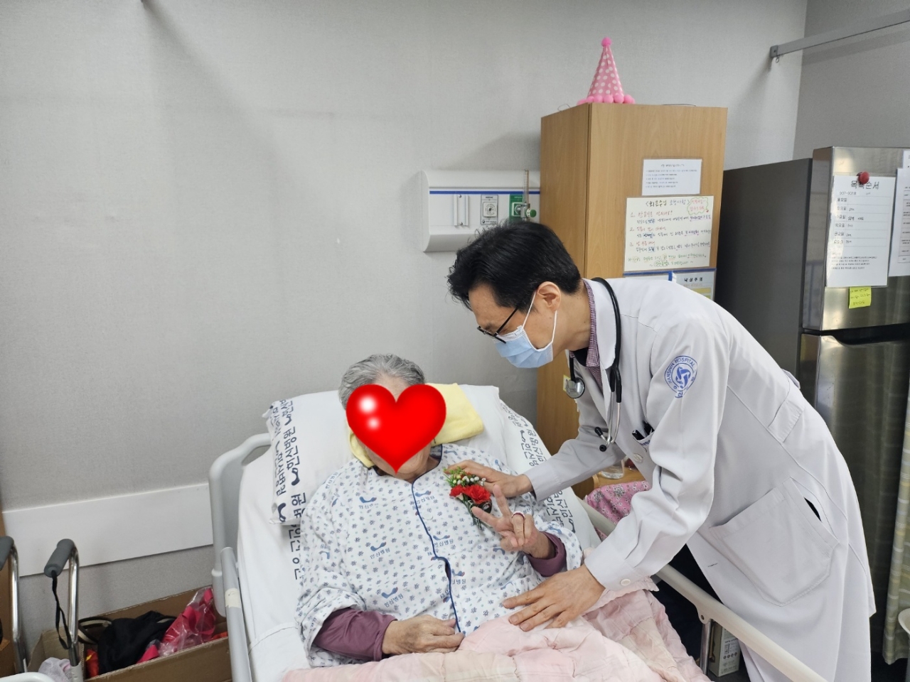 환자분들의 빠른 회복과 재활 위하는 마음으로 카네이션을 달아드렸습니다.