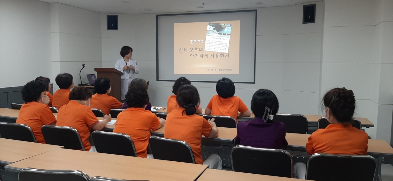 이번 교육은 환자분들에게 적용하는 신체 보호대를 좀 더 확실하고 안전하게 사용할 수 있도록 교육하였습니다.