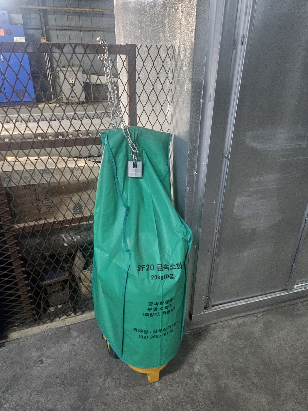 금속화재 및 화학화재에 효과적으로 소화를 할 수 있는 D형 소화기를 비치하였습니다.