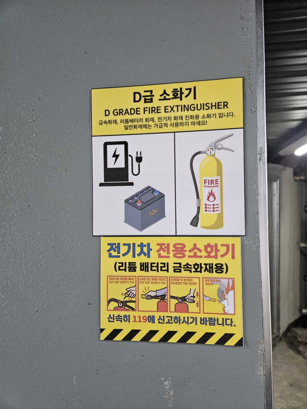 대비하여 D급 소화기를 자동 주차타워내에 비치하였습니다.