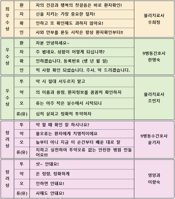 이번 행사로는 직원분들의 4행시 짓기대회, 탈기저귀 운동, 근접오류 보고 활성화 캠페인을 시행하였습니다.