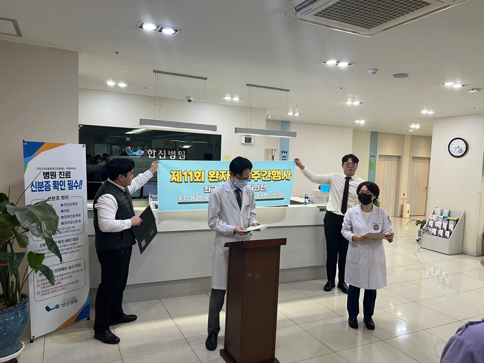 저희 (의)용각의료재단 한신병원 환자안전실 주관으로 제 11회 환자안전주간 행사를 시행하였습니다.